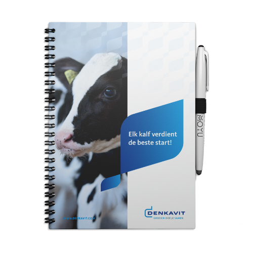 Voor Denkavit, specialist in jongdiervoeding en innovatie binnen de veehouderij, hebben wij 50 uitwisbare notitieblokken mogen leveren. Denkavit werkt dagelijks aan de ontwikkeling van hoogwaardige voeding en duurzame oplossingen voor jonge dieren, waarbij onderzoek en praktijk nauw samenkomen. Met de uitwisbare notitieblokken kunnen medewerkers eenvoudig aantekeningen maken, aanpassen en opnieuw gebruiken tijdens onderzoeken, productontwikkeling en dagelijkse werkzaamheden. Zo dragen de notitieblokken bij aan efficiënter werken én een bewuste keuze voor minder papiergebruik.